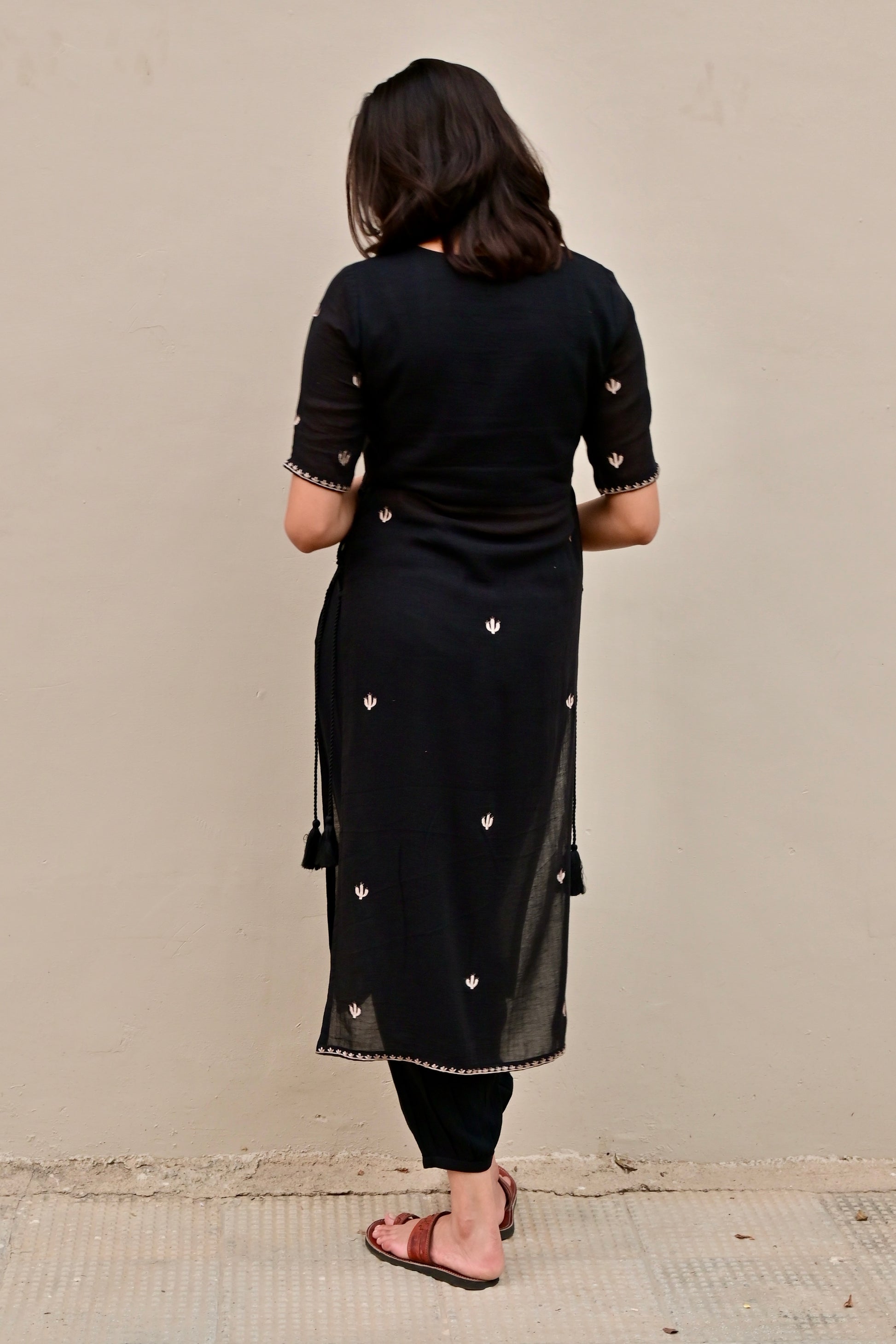Black Cactus Embroidered High Slit Kurta Set