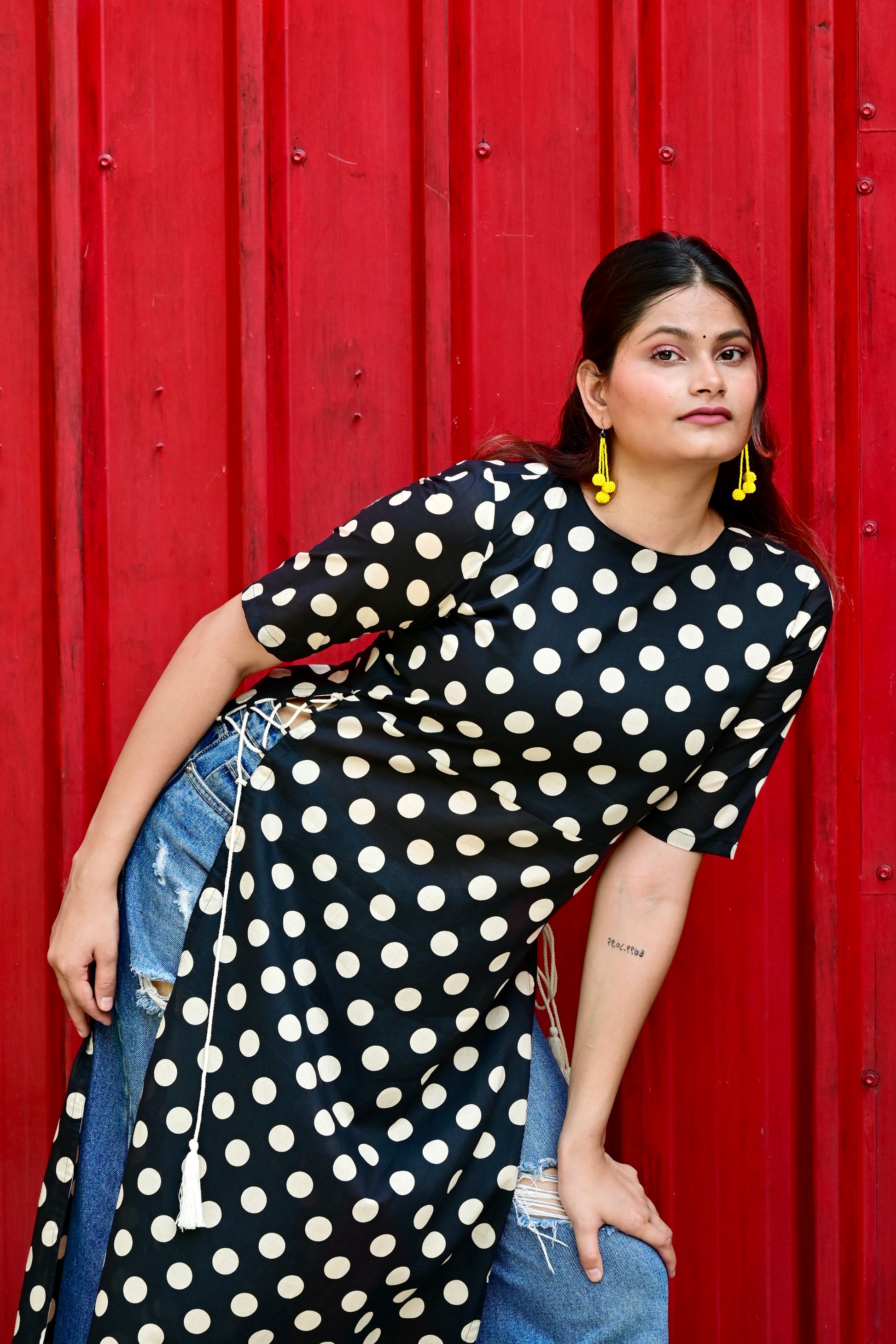 Black Polka High Slit (Only kurta)