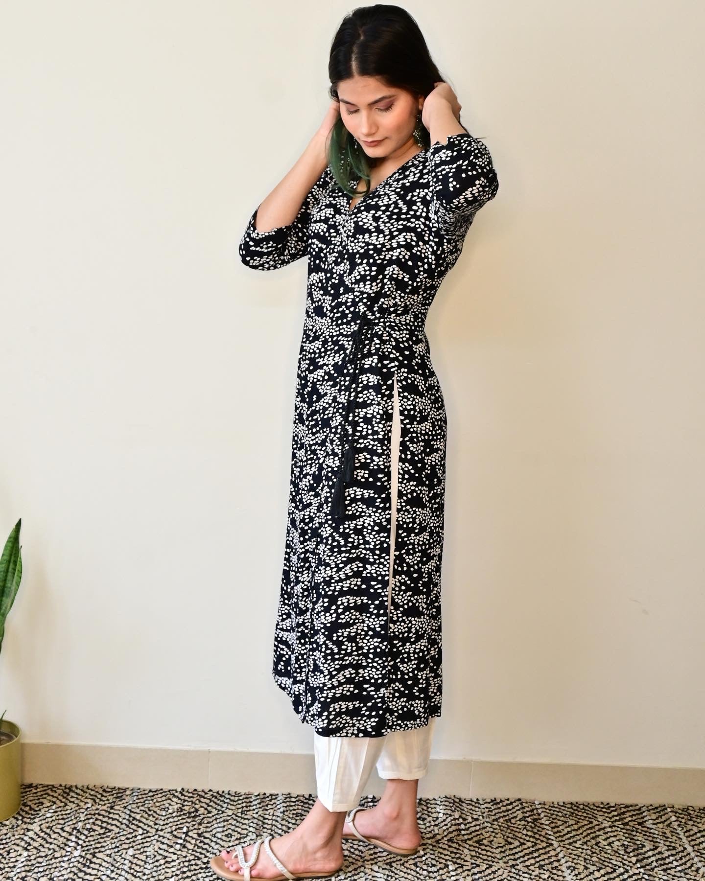 Black & White Printed Angrakha Kurta set