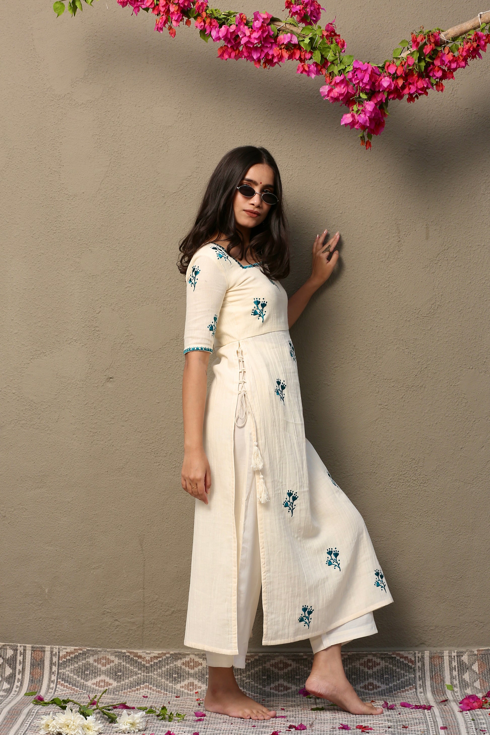 Colour: Off white with turquoise blue embroidery