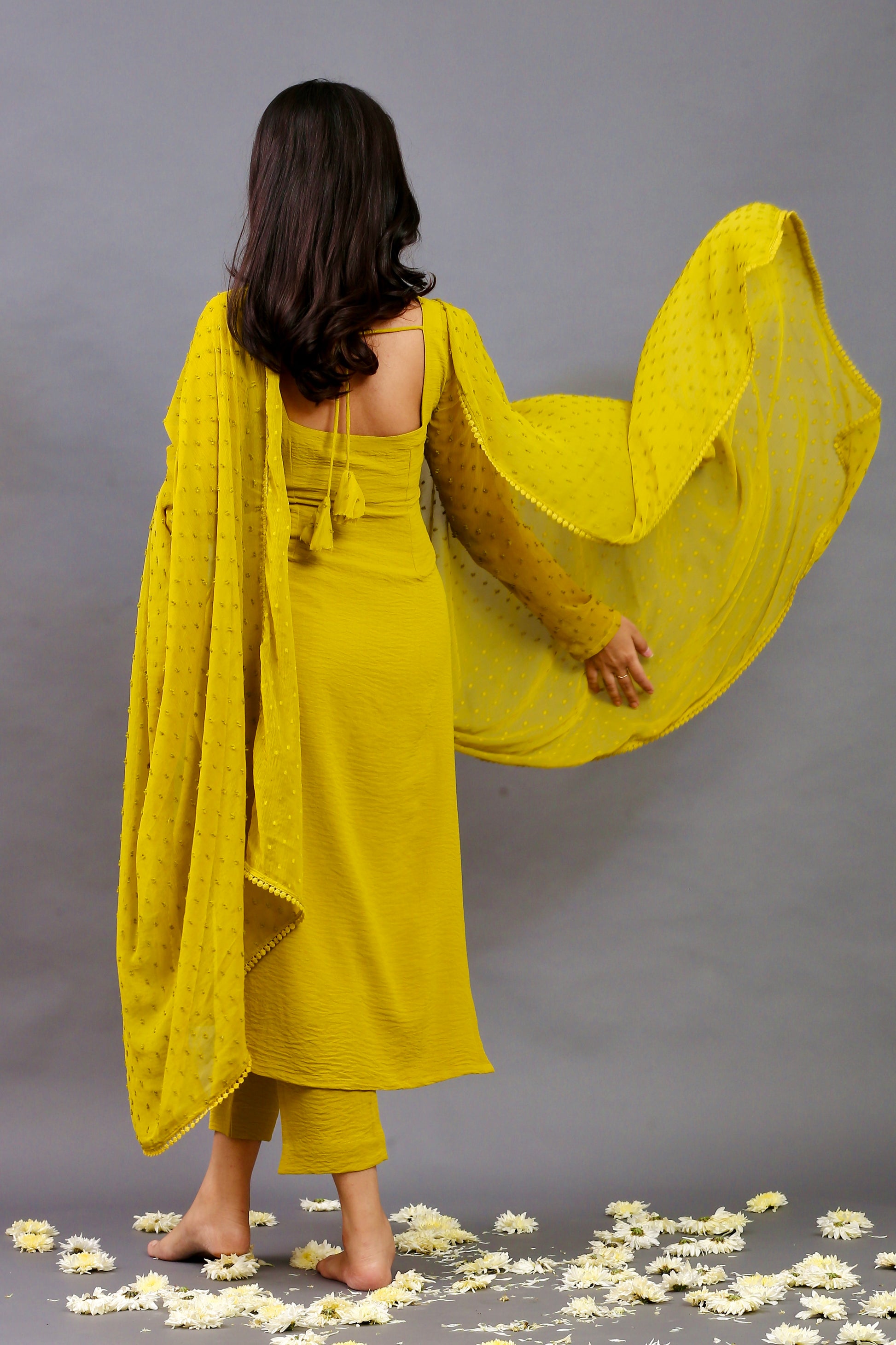 Lemon green full sleeves kurta pants & dupatta (Set of 3)