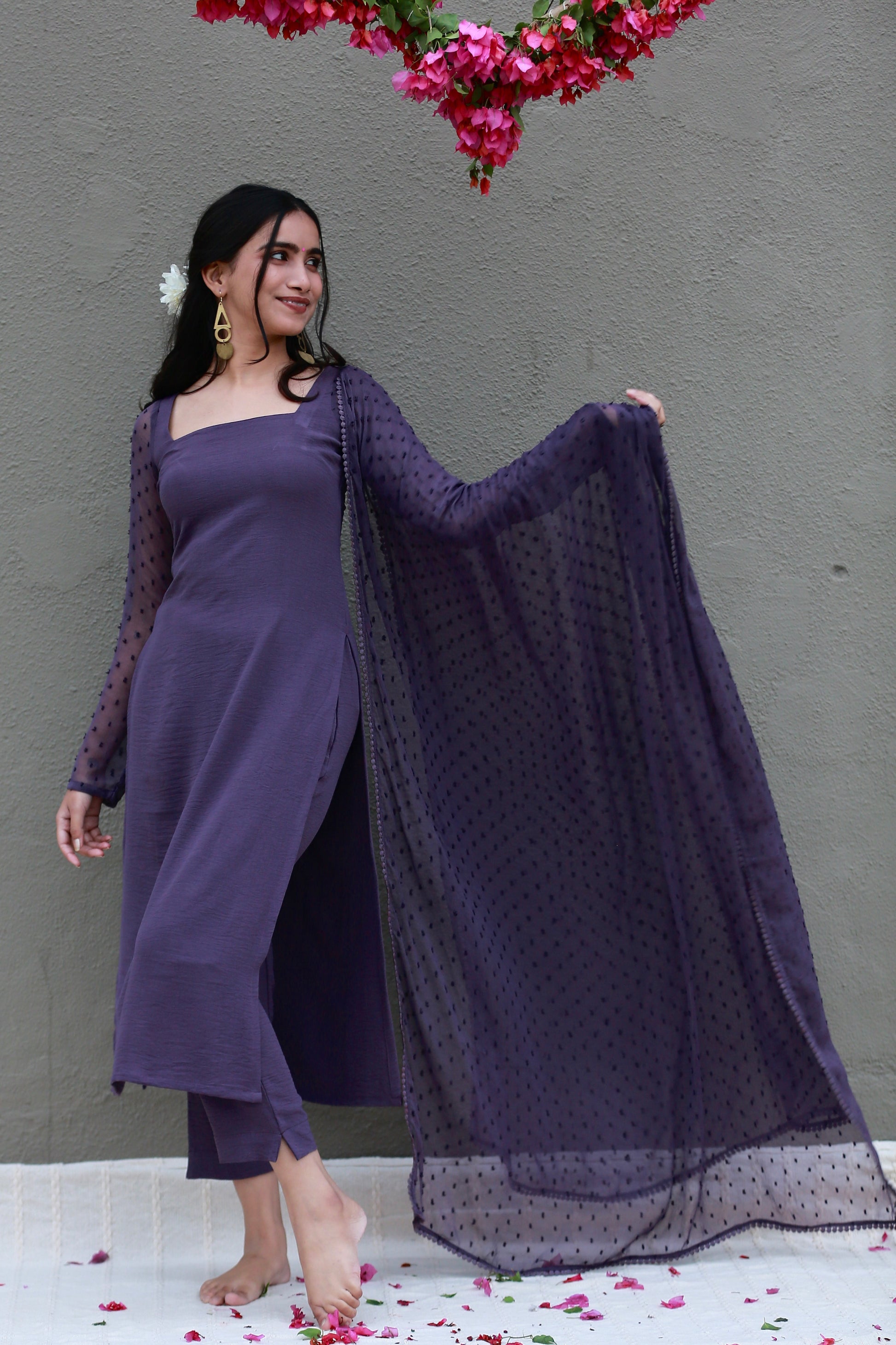 Muted lilac full sleeves kurta pants & dupatta (Set of 3)