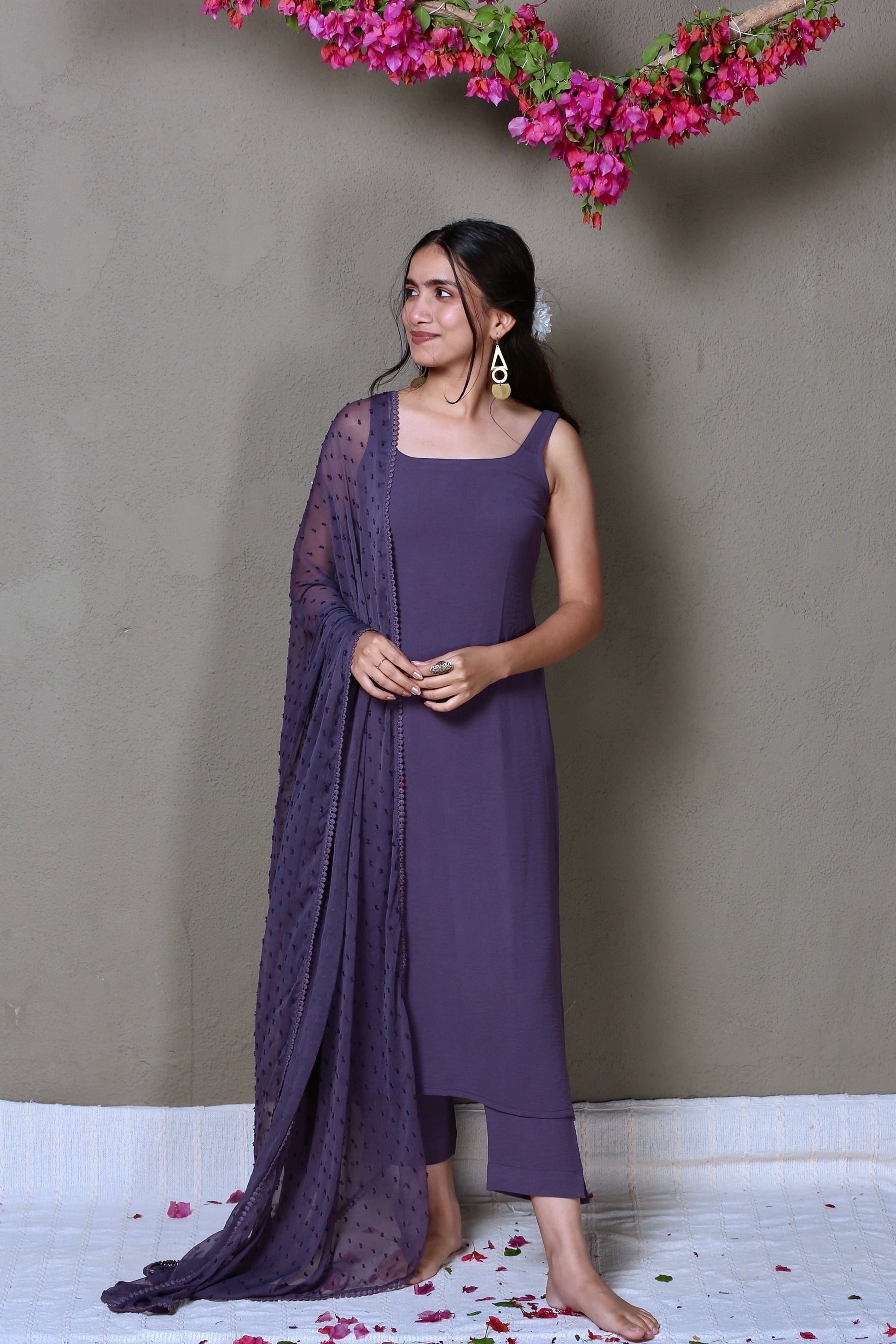 Muted lilac sleeveless kurta pants and dupatta (Set of 3)